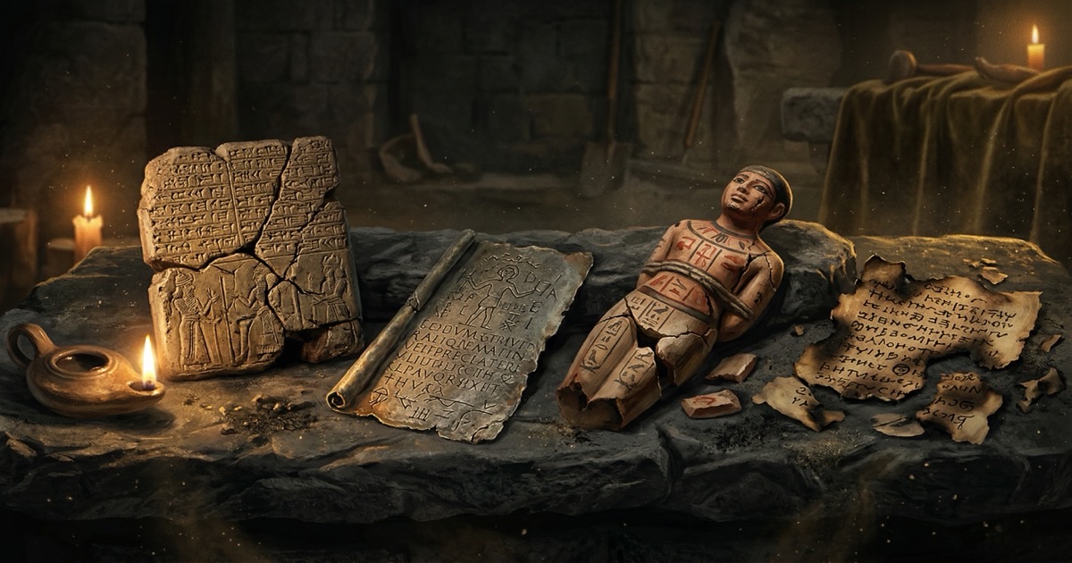 - 500 BCE — Greek curse tablets (katadesmoi): Lead sheets with curse formulas deposited in wells and tombs. Over 1,600 found
