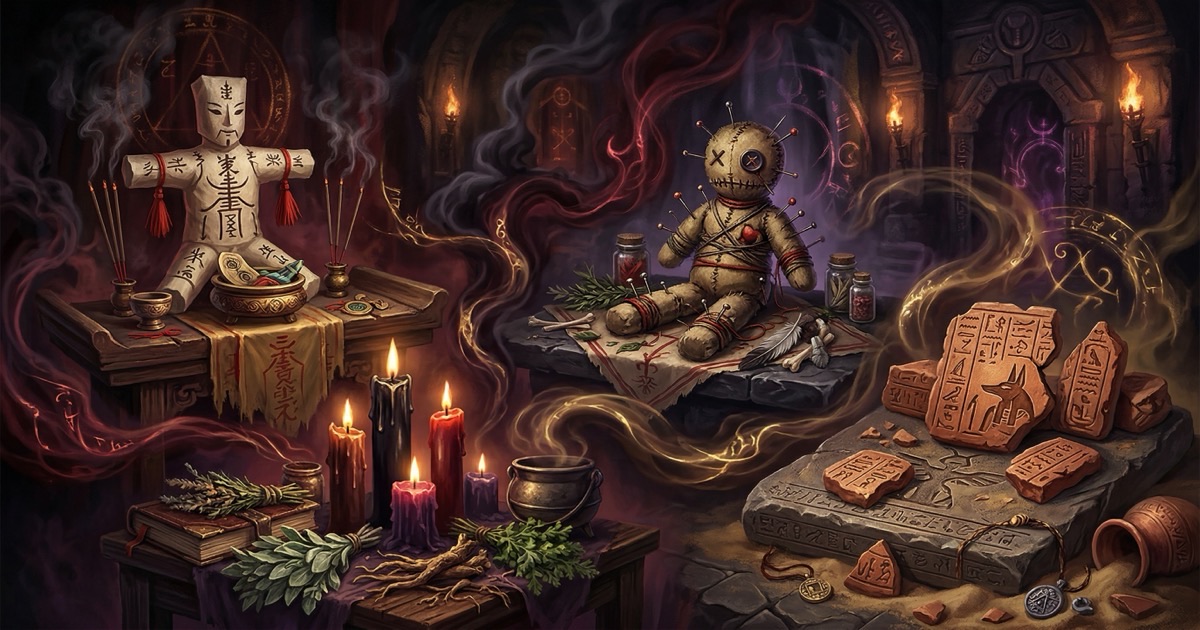 Revenge spells across cultures — from ancient curse tablets to the Chinese Da Siu Yan tradition. Explore the history, et...