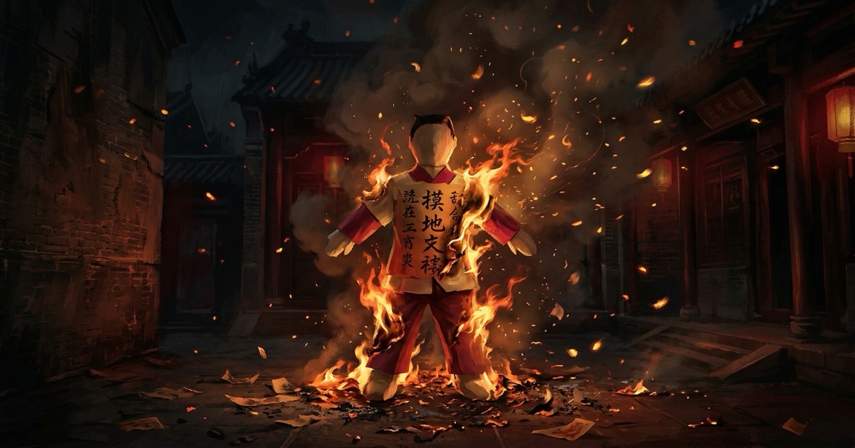 Cursing rituals exist in virtually every culture and follow a consistent four-step pattern: identify your target, channel your intent, perform a symbolic act (striking an effigy, burning a representation, speaking words of power), and seal the curse. The Chinese Da Siu Yan tradition uses a paper effigy struck with a shoe, then burned.